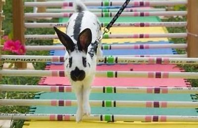 Rabbit hopping and agility activities require a cushioned surface such as grass, shavings, or mats to protect the rabbit’s feet and joints. Interlocking EVA foam mats are especially effective, serving both as impact-absorbing padding and as visual guides to direct movement. Typically sized 24" x 24" x 3/8", these mats should be latex-free, non-toxic, and fade-resistant, with a snug fit to prevent shifting. Their lightweight design makes them easy to transport and ideal for temporary setups.